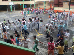 Las docentes de la básica primaria promovieron la realización de una actividad deportiva y de recreación que generó entusiasmo y activa participación de los estudiantes. También sirvió para generar un intercambio con estudiantes de la escuela Santa Teresita, sede de la prestigiosa Institución Educativa Nuestra Señora del Rosario.